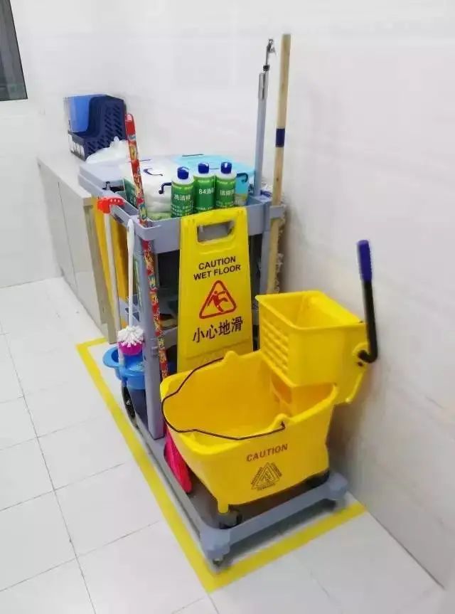 启示:医院物业卫生工具分区使用,定位摆放是为了预防交叉感染,利于病人康复。在其他业态虽然没有这么高的要求,如果也实行工具分区使用,定位摆放,服务水平便会有立竿见影的提高。