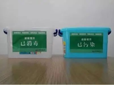 在擦拭病床或者床头柜时,保洁员从张贴有已消毒标识的储物盒中取出一块清洁的抹布,对一张病床或者床头柜进行清洁消毒作业完成后,那块抹布不能再用来擦拭其他物品,只能将其放入张贴有已污染标识的储物盒中,进行清洗、消毒处理后才能再次使用。洗净的毛巾集中晾晒干燥后存放于储物盒中待用。