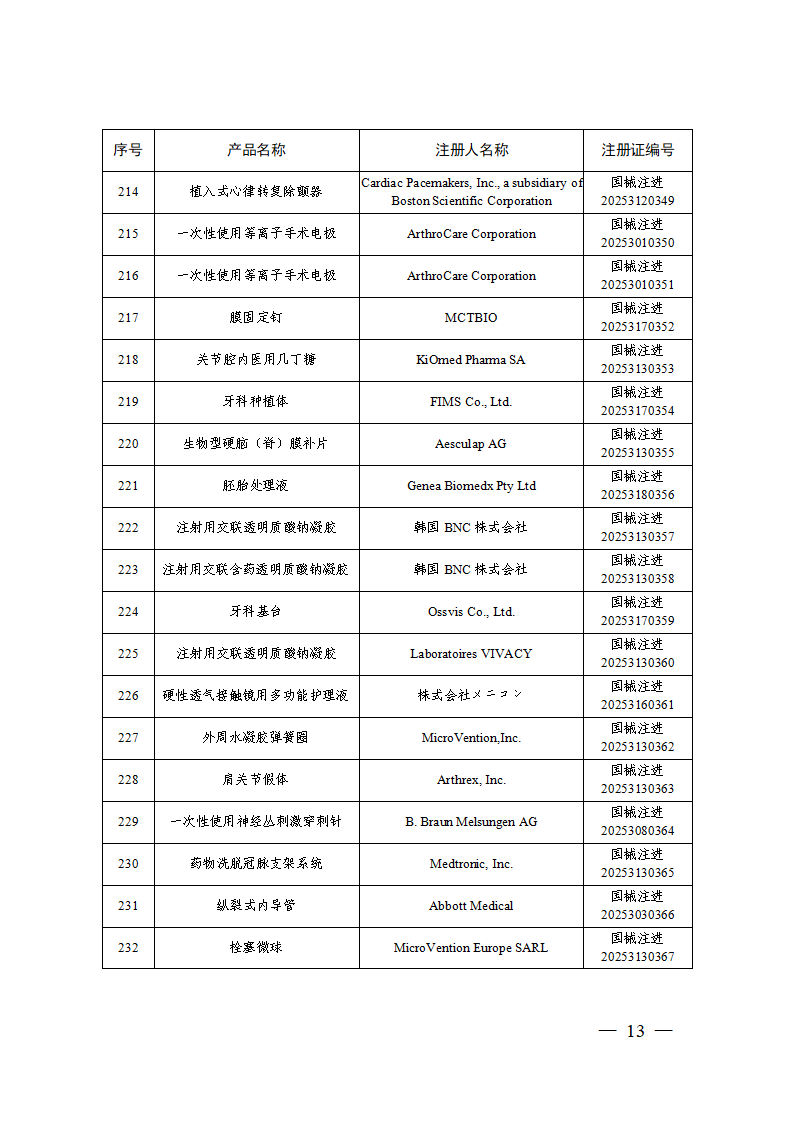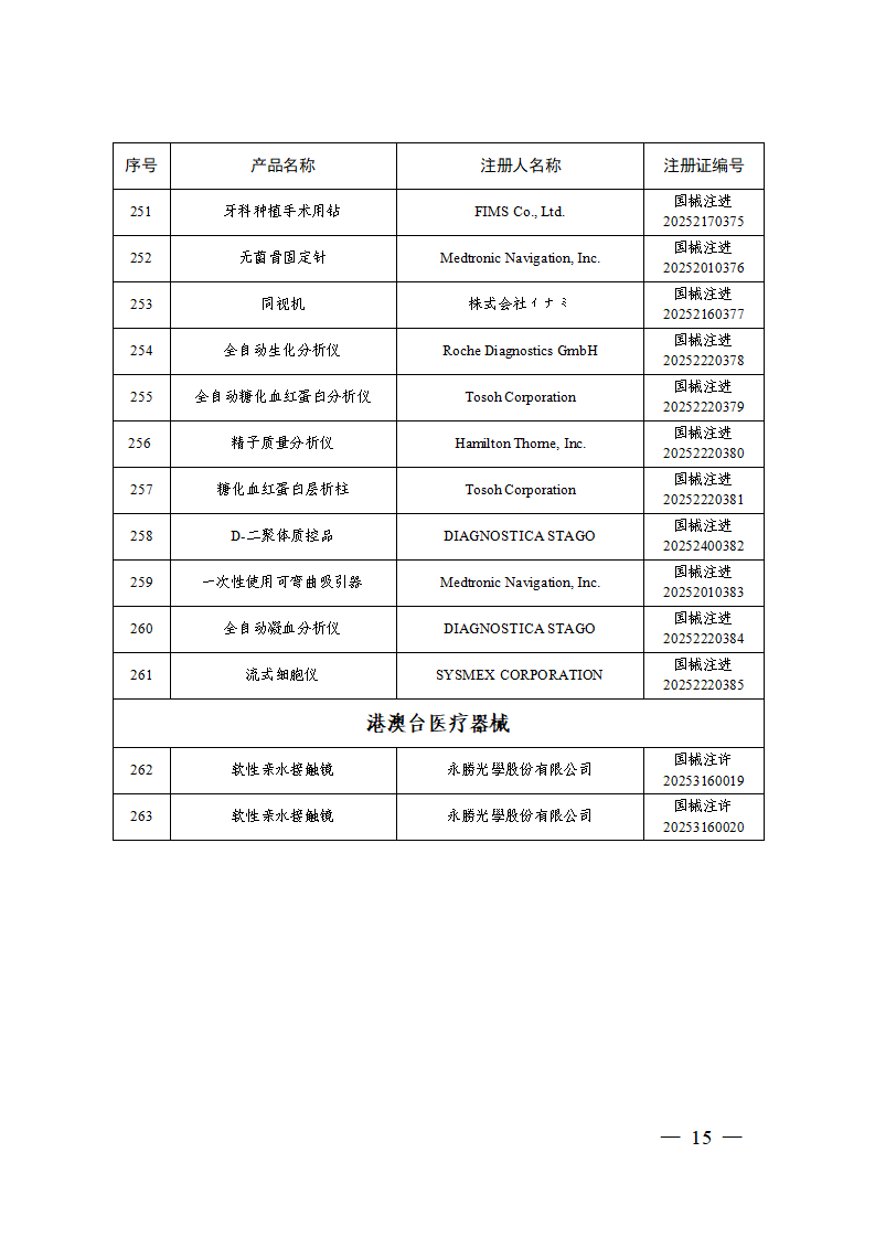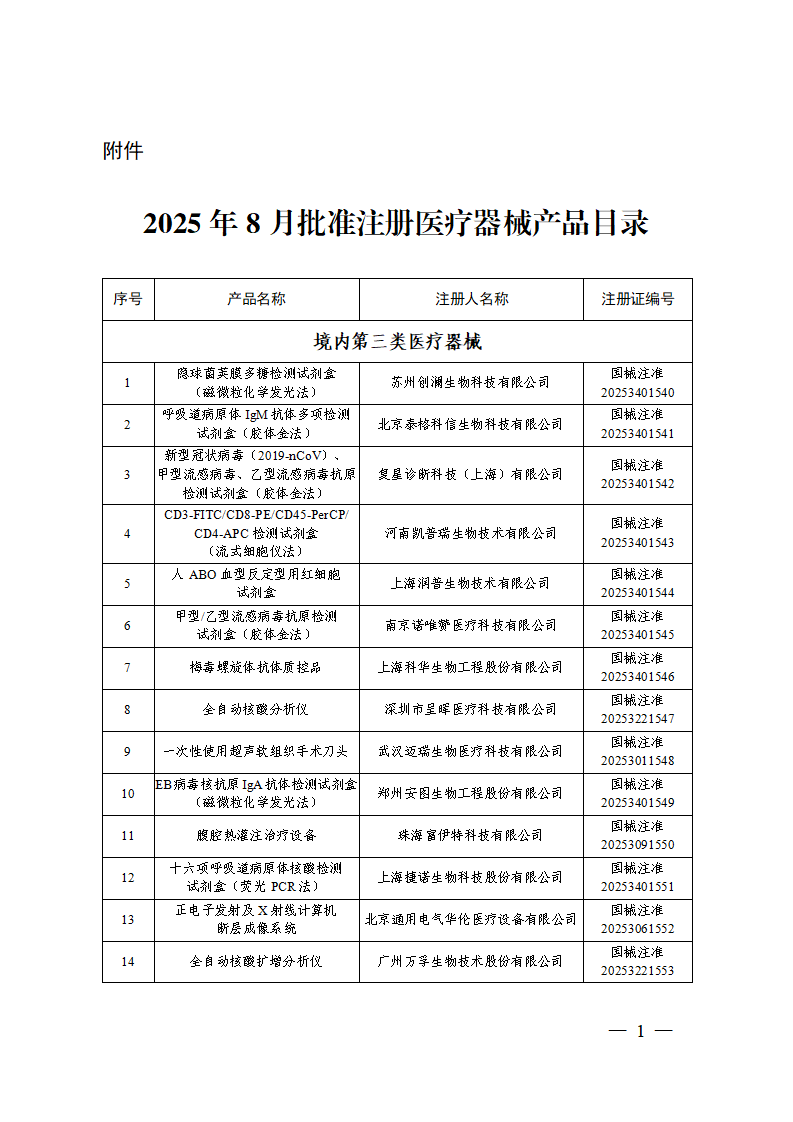 | 标题 | 国家药监局关于批准注册263个医疗器械产品的公告(2025年8月)(2025年第90号) | ||