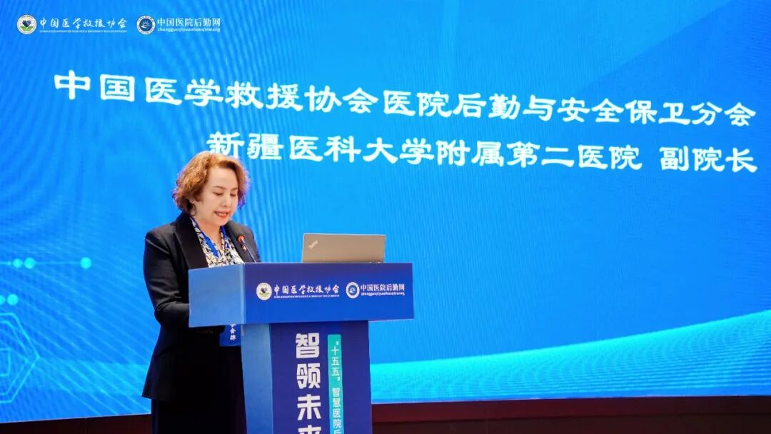 中国医学救援协会医院后勤与安全保卫分会副会长、新疆医科大学附属第二医院副院长古力巴哈·买买提力致辞