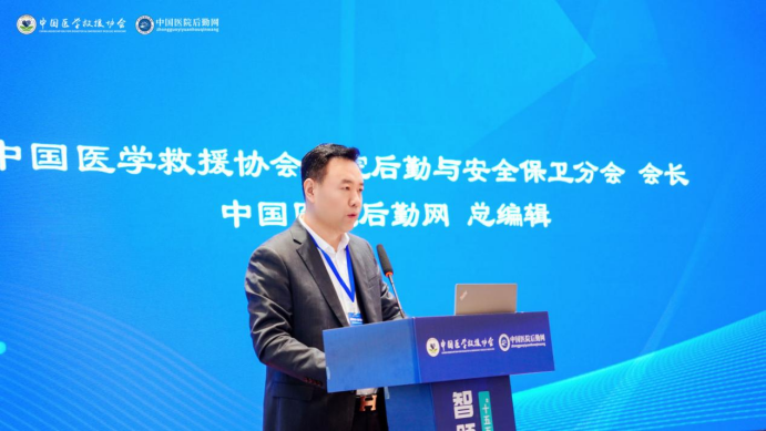 中国医学救援协会医院后勤与安全保卫分会副会长、华中科技大学同济医学院附属协和医院副院长季湘年作主题分享