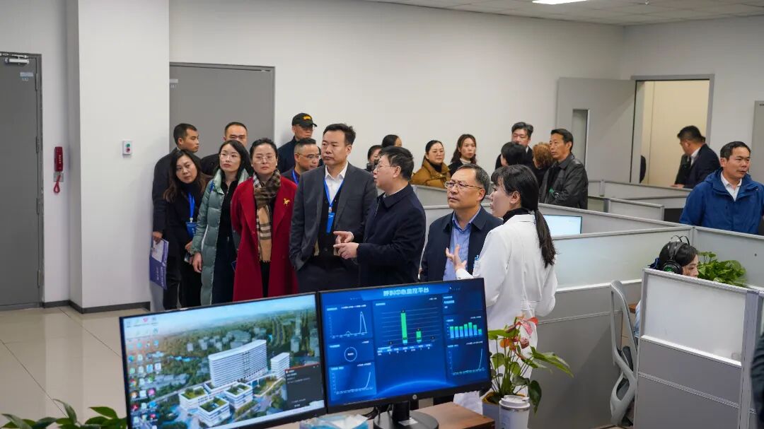 代表团重点考察了智慧后勤与安防体系建设。与会代表们深入了解了基于物联网的智能预警与多系统应急联动机制、后勤一站式服务中心与呼叫中心高效协同的现代化运营管理模式。在智能病房——搭载鸿蒙系统的智慧医疗场景,代表团现场体验了医疗设备无缝协作与数据实时共享的创新实践。远程会诊中心则集中体现了医院在整合信息资源、拓展服务能力方面的建设成果。随后,代表团还参观了体现人文关怀的员工图书馆。