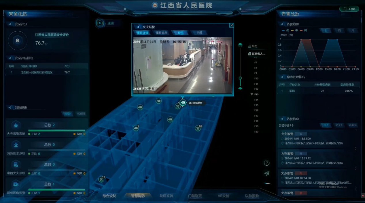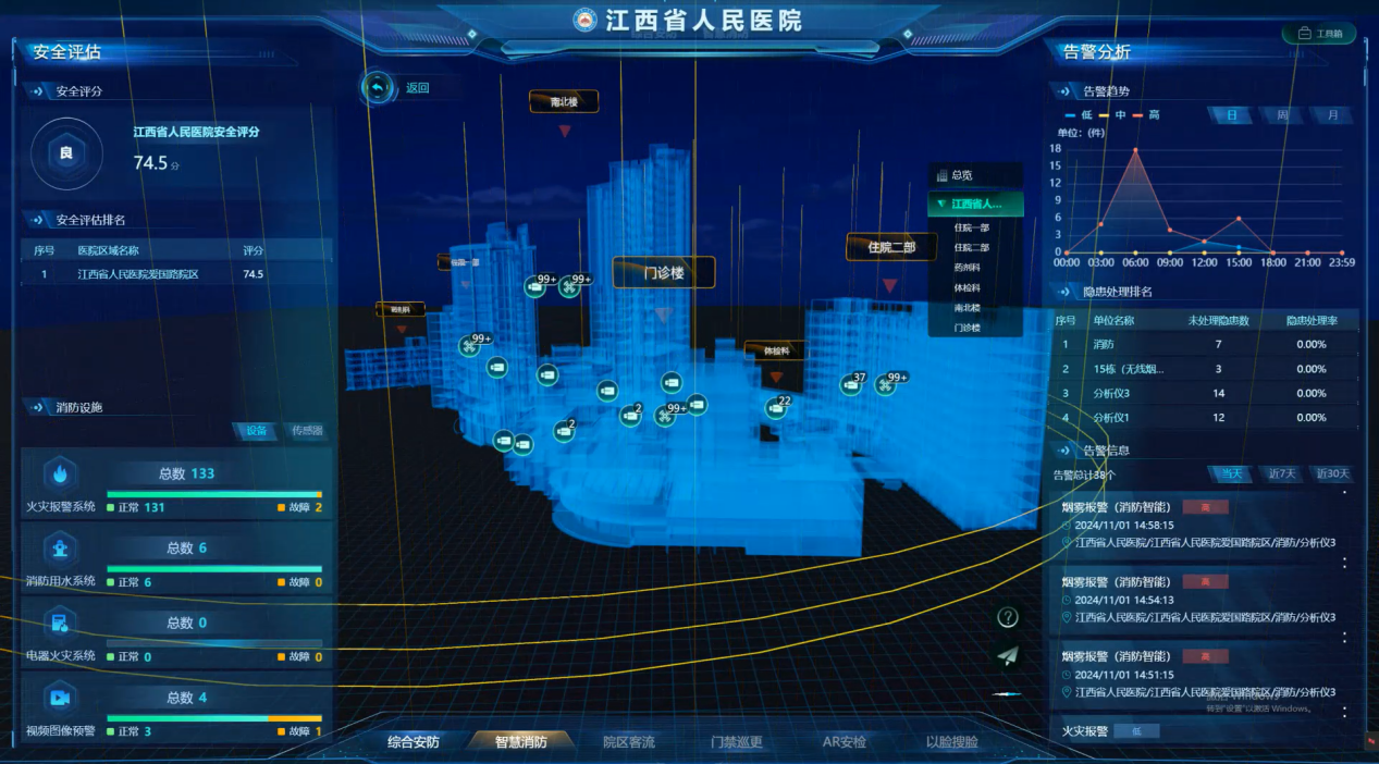 消防安全是医院安全运行的重中之重。针对传统消防“发现滞后、确认缓慢、联动不足”等问题,江西省人民医院打造“安消一体化”智能联动系统,推动安防与消防深度融合,实现火灾风险“早发现、快识别、准处置”的闭环管理。
